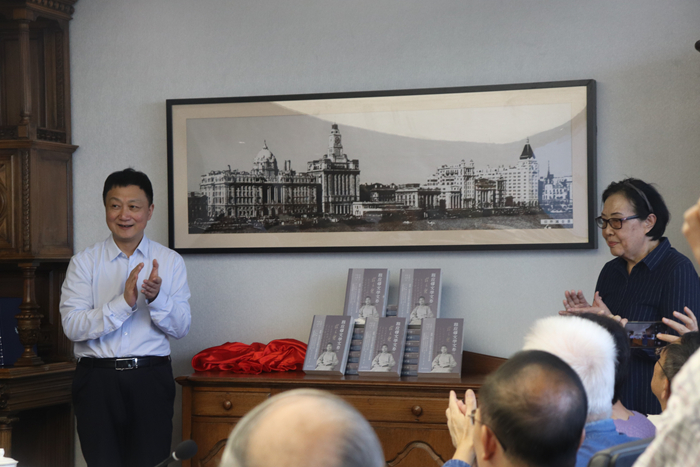 首发仪式由人文学院副院长姚霏主持。上海师范大学党委书记林在勇、社科处处长姚潇鸫、人文学院党委书记潘黎勇致欢迎辞。林在勇回顾了程应镠先生与上海师范大学的深厚渊源,表示《程应镠文学文存》的出版是对程先生文学生涯的最好纪念,呼吁文史学科各位同仁以程先生为榜样,恪守初心使命,坚定不移做好立德树人工作,传承弘扬“师道永恒”的师大精神,为学校加快建设教师教育特色鲜明的高水平大学作出更大贡献。上海书店出版社副总编辑杨柏伟分享了《程应镠文学文存》的编纂历程,指出该书的出版凝聚了众多专家学者的心血,旨在全面展现程应镠先生的文学成就和思想精髓,为学术界和广大读者提供一份珍贵的文化遗产。程应镠先生长女程炎女士深情回忆了父亲生前的点滴往事,表达了对父亲学术精神和人格魅力的崇敬之情。在热烈的掌声中,林在勇和程炎女士为新书揭幕。