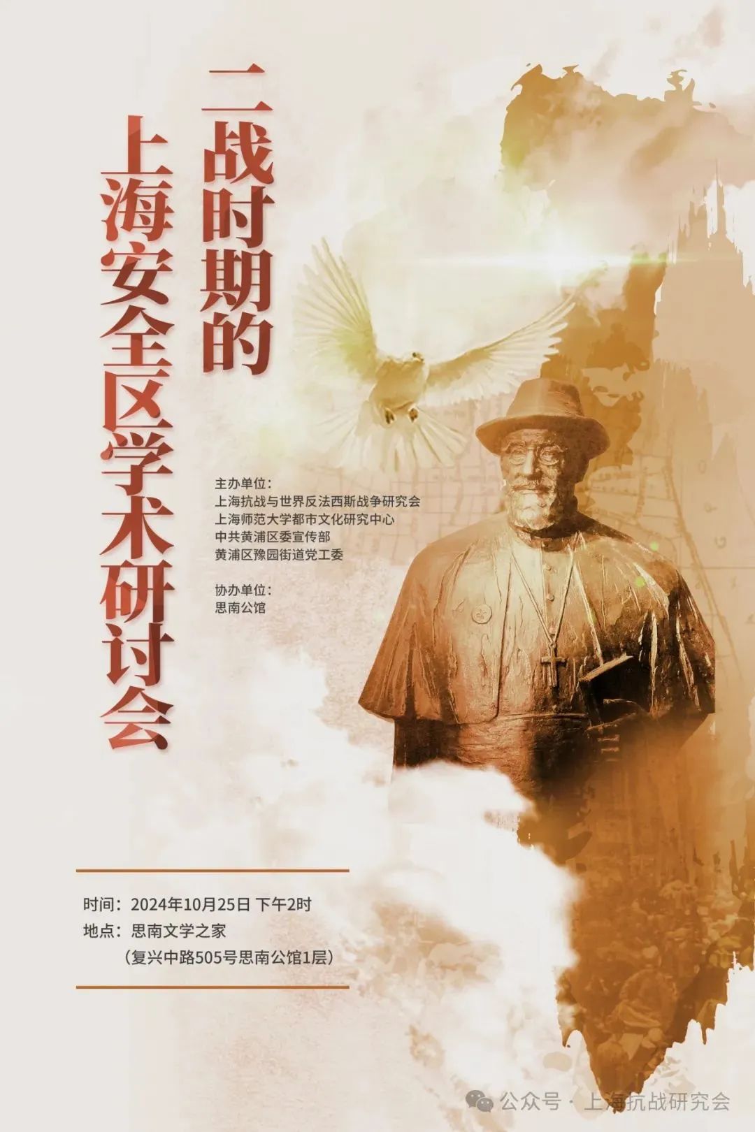 2024年10月25日,由上海师范大学都市文化研究中心、上海抗战与世界反法西斯战争研究会、中共黄浦区委宣传部、黄浦区豫园街道党工委联合主办,思南公馆协办的“二战时期的上海安全区”学术研讨会在思南文学之家成功举办,本次研讨会也是上海市社联学术月的活动之一。研讨会聚集了沪上知名的该研究领域专家、学者,深入探讨了二战期间上海安全区的历史过程及其对当今社会的重要现实意义。
