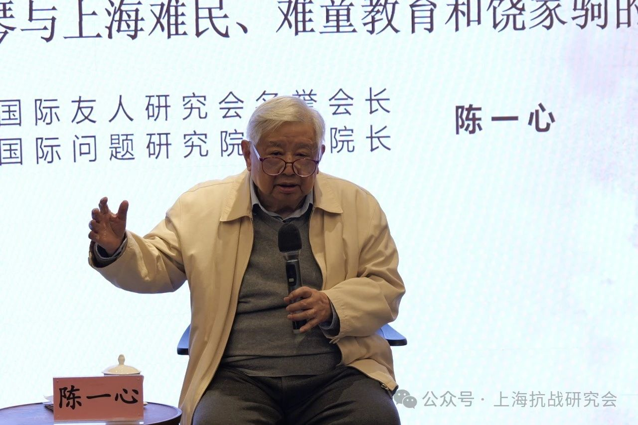上海抗战与世界反法西斯战争研究会会长、上海师范大学都市文化研究中心主任苏智良作了题为《中法友谊的赞歌——饶家驹与上海难民安全区》的主旨报告,深入探讨了上海安全区的伟大意义与当今宣传饶家驹事迹对推动中法友谊、推广救助难民“中国模式”的重要影响。上海国际友人研究会名誉会长、上海国际问题研究院原副院长陈一心先生讲述了其父亲陈鹤琴与饶家驹在难民救助上的合作,以及在上海开展难童教育的感人故事;上海社科院国际关系研究所前所长潘光先生回忆了其父亲、地下党员潘大成与饶家驹先生之间的深厚师生情谊;上海电台资深播音主持人金亚女士则分享了她参与欧洲广播节、传播上海安全区伟大壮举的难忘经历。