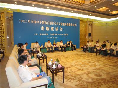 8月28日,由上海高校都市文化E-研究院、商务印书馆联合举办的“《全国31个省市自治区公共文化服务指数蓝皮书》出版座谈会”在北京人民大会堂举行。出席会议的有中国出版集团公司副总裁李岩、商务印书馆总经理于殿利、新闻出版总署出版管理司图书处处长洪勇刚、首都师范大学校长刘新成及各界知名专家学者李孝聪、李鹏程等二十余人。新华社、中新社、《人民日报》、《光明日报》、《中国青年报》、新华网、新浪网等三十余家媒体记者到场进行会议报道。座谈会由上海高校都市文化E-研究院特聘研究员陈恒主持。